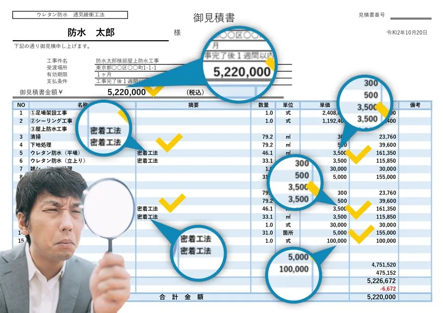 防水工事の見積もりの真実を知ることで、工事金額を安くできるケースが多いです。